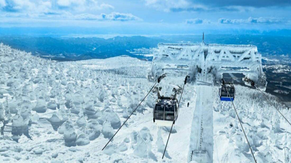 【藏王樹冰纜車】想到藏王山上近距離觀賞樹冰的話必須先搭乘「藏王纜車」(蔵王) ,從「藏王山麓」站為起點搭乘山路線,到「樹冰高原」站換搭山頂線,最後抵達「地藏山頂」站,沿途就能先從空中一窺樹冰的面貌。本公司特別安排您搭乘纜車登頂鑑賞,讓您一探一般人無法到達之處,來一趟特別的藏王嚴冬樹冰鑑賞之旅!