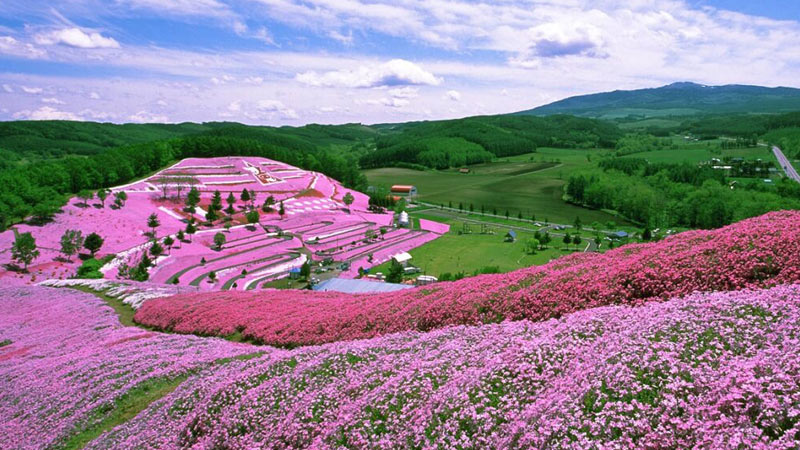 ●【東藻琴芝櫻公園】小小的芝櫻開滿在面積九萬平方公尺廣大的斜面上,像是粉紅色與白色交織的地毯,從昭和50年代就開始經營的管理者,每年都開墾一萬平方公尺的地來種植芝櫻,經過八年終於完成了這東京巨蛋兩倍規模大的芝櫻之丘,在每年的五月到六月都能看到用愛心培育栽種的芝櫻,數大便是美,令人讚嘆。